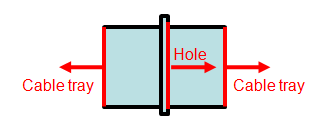 The cable router recognizes a specific type of equipment to be penetration objects, as shown below. The penetration object must contain two cable tray type nodes and one hole node. The cable tray nodes must be before the hole node. The direction of the nodes does not matter.