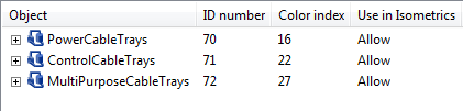 The dimension tables of the cable tray parts must contain the attributes that define the space that cables can use: 'CableWidth' and 'CableHeight'.