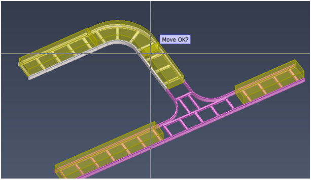 When you accept the new location, the required changes are made to the geometry, the modified objects are highlighted, and you can browse the results.