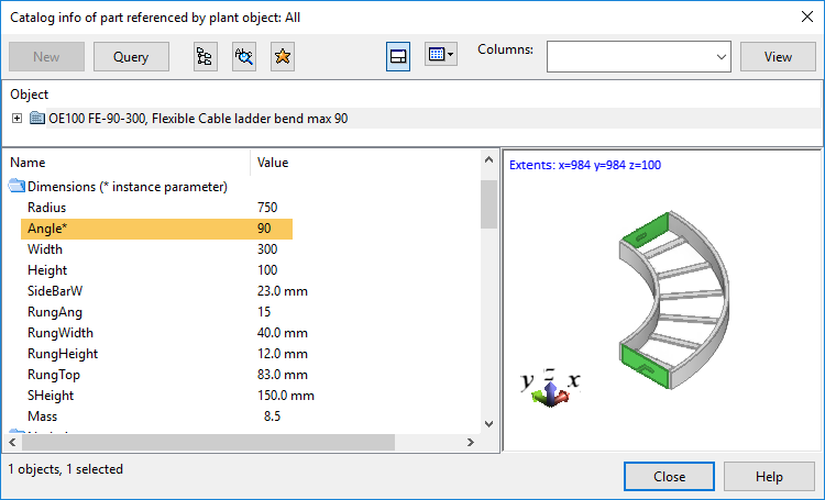 • To use flexible curves that can bend horizontally or vertically in any angle, the catalog part that the specification assigns for the bend must define angle as an instance parameter.