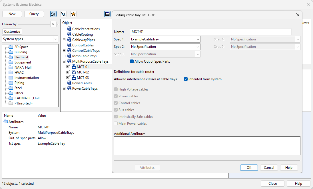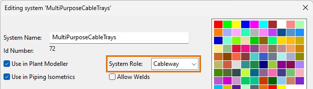 • If cables are to be routed in a cable way or cable penetration, its System has System Role set to "Cableway".