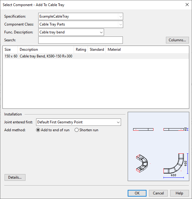• Cable tray lines are continuous, consisting of interconnected straight cable tray pieces and components such as reducers and curves, or miter joints instead of curves.