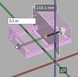 When the tool is enabled, moving the cursor over a cable tray finds the nearest centerline point, and the designated point and the cut plane are visualized to the user. There are also text labels that indicate distance from the centerline endpoints, and the distance values can be manually edited to move the cut point to a specific location.