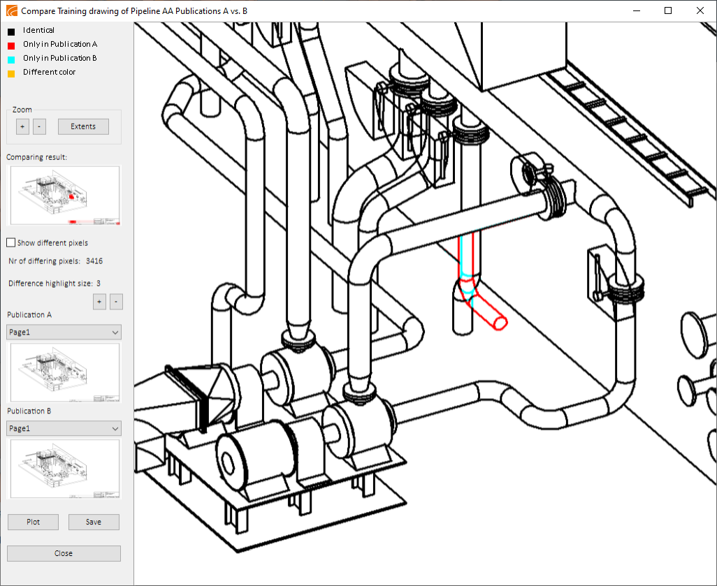 You can compare two publications, or a single publication and the checked-in drawing or diagram, and see what are the differences between the two.