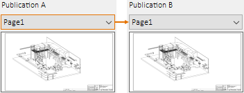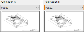 • Selecting a page from the second publication does not change the page of the first publication. You can use this, for example, when the page count or page order has changed between publications and the same drawing is no longer on the same page.