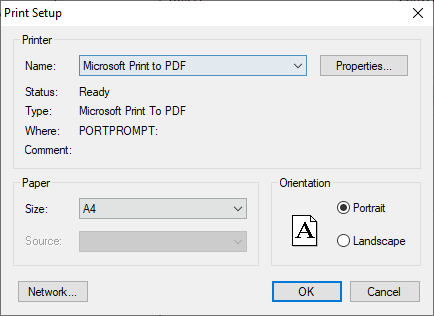 Right-click the selection and select Plot from the context menu. The Print Setup dialog opens.
