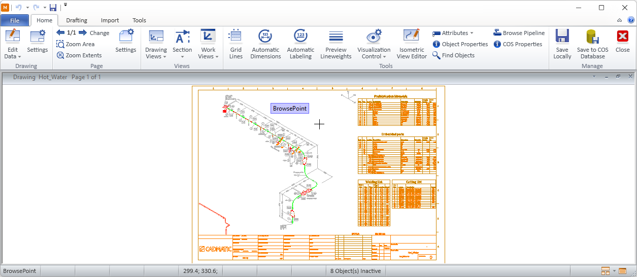 Opening a document from the Document browser opens the CADMATIC document editor. Use the tools in the document editor toolbar to prepare documents for publishing.