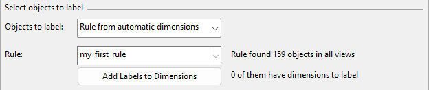 • Rule from automatic dimensions – Select this option and then a dimensioning rule from the Rule list to label the objects that match the rule.
