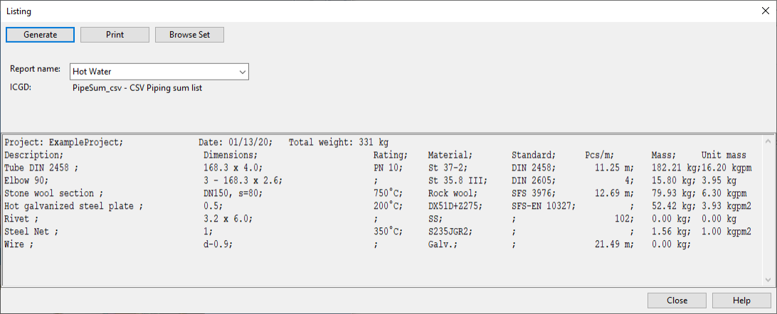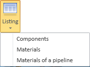 You can generate a list of components, materials, or materials of a pipeline from the 3D model. In addition, project administrator can define custom listings.
