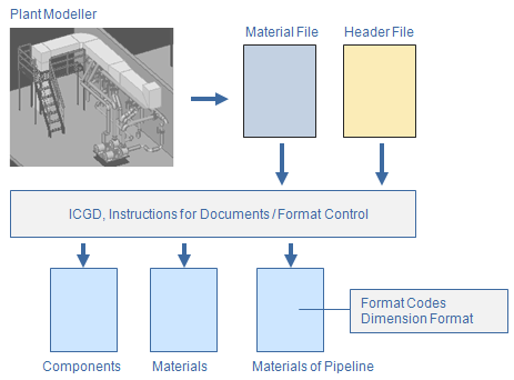 - ICGD selects attributes from the Material File and common information from the Header File, and collects the information to the file defined in the ICGD.