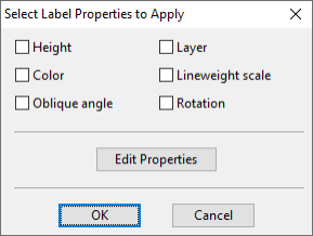 Pick the labels to which to apply the properties and press Enter. The Select Label Properties to Apply dialog opens.