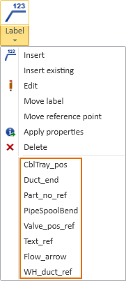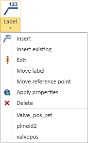 Insert | Insert existing | Edit | Move label | Move reference point | Apply properties | Delete | Recently used labels
