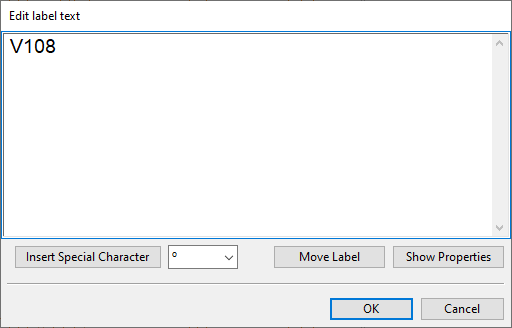 Edit the label text or the label properties described in Label Properties as appropriate and click OK.