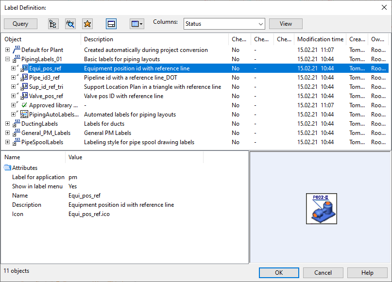 In the Annotate group, select Label > Insert. The Label Definition dialog opens, listing the available label definitions.