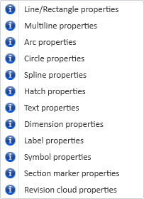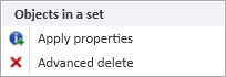 In the Properties menu, the Objects in a set section contains tools for changing the properties of several drafting objects at the same time and for deleting drafting objects that have a certain property value.