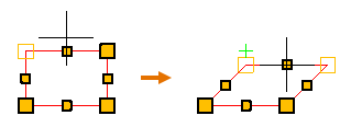 You can rotate one or more 2D drafting objects around a user-defined base point. If the set contains associative labels, they keep their associations and the reference lines stay where they are. If the set contains associative hatches, they lose the association to the parent object and stay where they are.