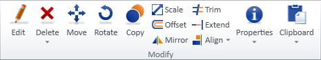 On the Drafting tab, the Modify group contains tools that can be used to modify 2D drafting objects and to change their visual appearance. Some of the tools only work on specific object types.