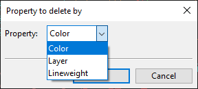 2. Pick the objects to include in the set and press Enter. The Property to delete by dialog opens.