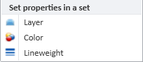 In the Properties menu, the Set properties in a set section contains tools for setting a specific layer, color, or lineweight to several objects at the same time, regardless of their object type.