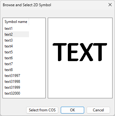 You can select one of the predefined 2D symbols or a custom symbol that has been stored in COS.