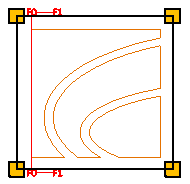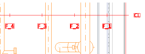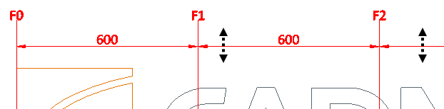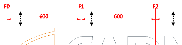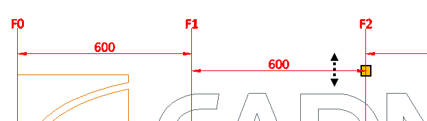 • When only 1 line is visible, show… – If selected and the grid area only contains one reference line in X or Y direction, a special marking shows what is the next coordinate reference in that direction, if available. In the example below, only F0 is inside the grid area, so F1 is shown as the next available reference line.