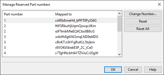• Reset All – Resets all part number mappings. After this, there are no reserved part numbers in the document.