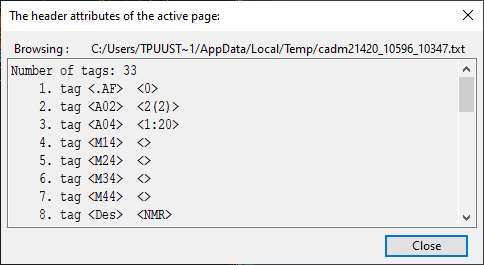 This command opens a dialog that shows the attributes stored in the page header.