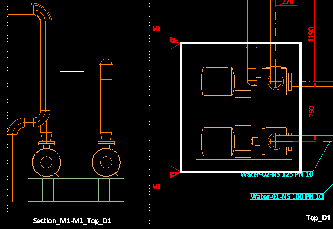 You can create a section view by adding a section marker to a drawing view. Section views are named using the pattern "Section_<A>-<A>_<B>" where <A> is the marker text and <B> is the name of the drawing view. For example, if the marker text is "M1" and the drawing view is "Top_D1", then the section view is "Section_M1-M1_Top_D1".