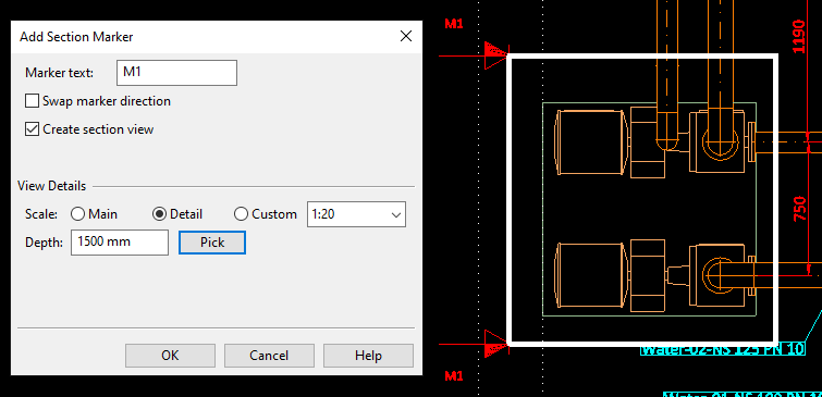 Scale – Define the scale of the section view: select Main, Detail or Custom and then select or type the scaling value.