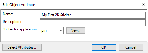 4. Select whether to store the sticker in the project database or the library database and click OK. The Edit Object Attributes dialog opens.