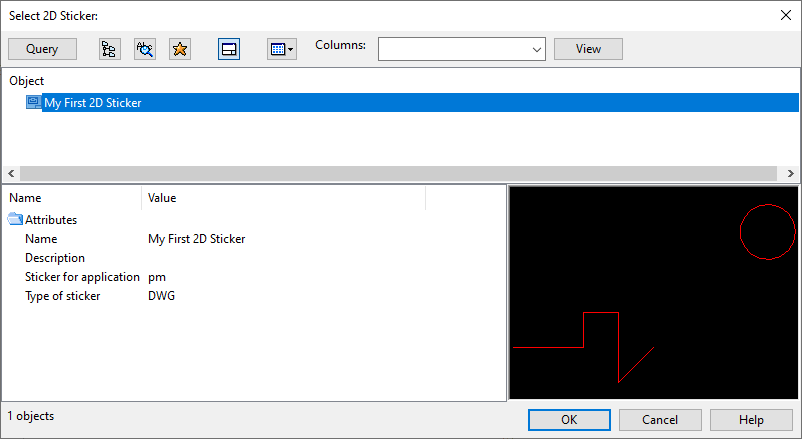 3. Pick a base point for the sticker. The Database for the 2D Sticker dialog opens.