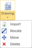 Select Drawing > Rescale to change the scale of an imported drawing. You are prompted to select the import group, define the base point, and define the new scaling value.