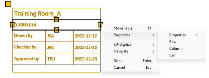 • You can move the table by clicking and dragging the corner point. Alternatively, select Move Table (M) from the context menu.