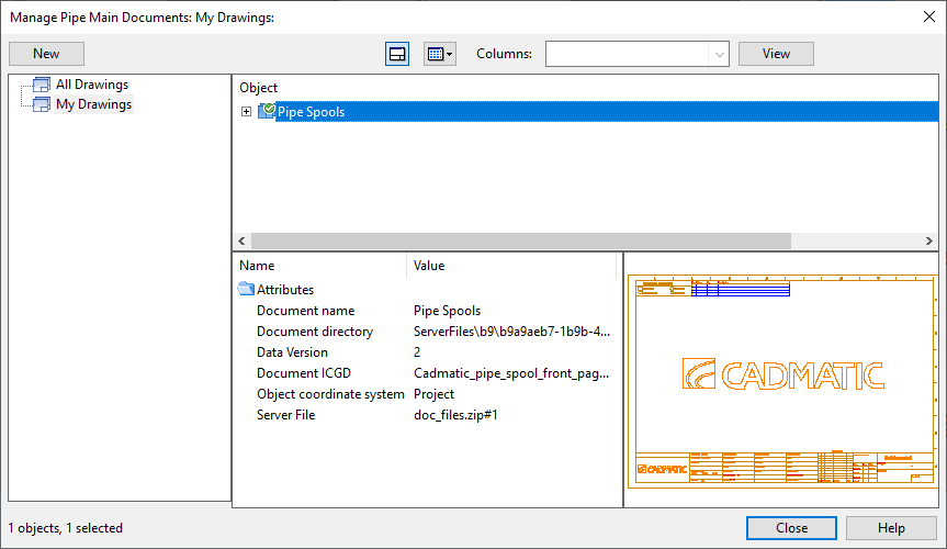 - Project contains a pipe main document group for the pipe spools to be included in the pipe main document.