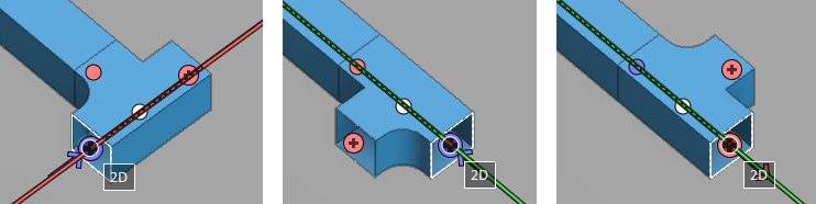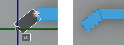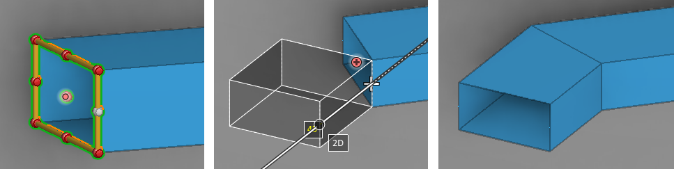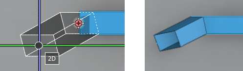 - If the start for the new duct is at the end of a previously routed part, the duct will be mitered at both ends to fit into the gap. If the direction at either end is fixed, both the start and the end point must be on the same line (1 mm deviation is allowed).