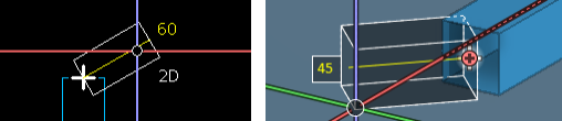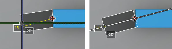 In this example, the lock command constrains the cursor to the direction line of the nearest preferred turn angle (15°).