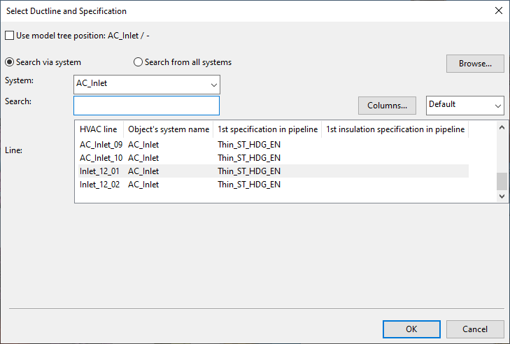 Select Use model tree position… if you already made the appropriate selection in the Model Tree pane. Otherwise, select the System and the Line to use.