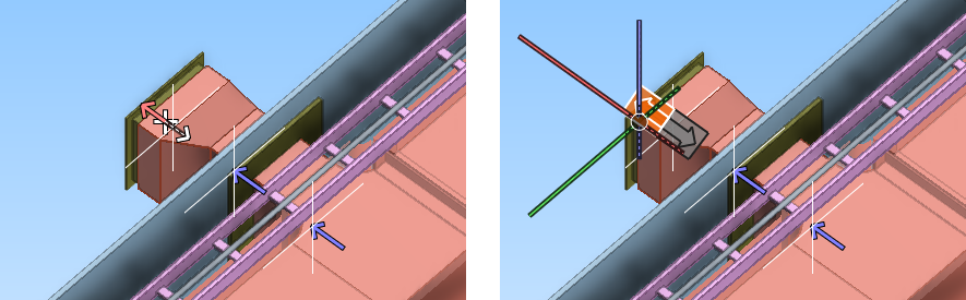 If you selected several parts, select the reference point of the adjustment from the on-screen tool, and press Enter.