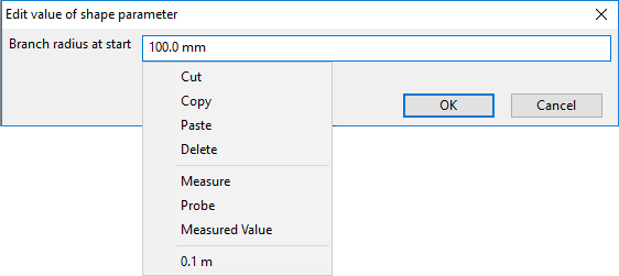 In the Apply Duct part design rule dialog, double-clicking a parameter row opens the Edit value of shape parameter dialog. In this dialog, you can edit the parameter value manually or obtain the new value by using the options in the context menu.
