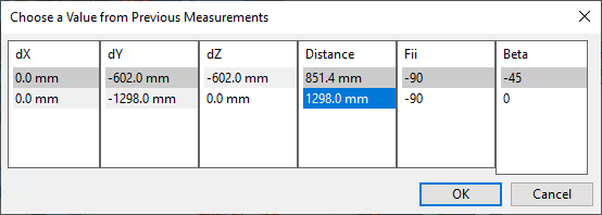Measured Value – Opens a dialog where you can select a value from last five measurements.