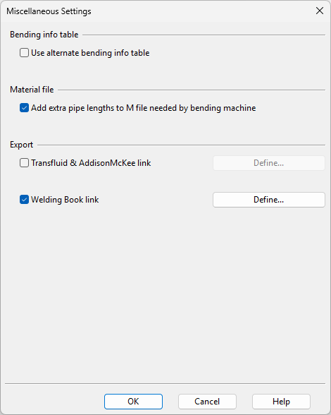 Add extra pipe lengths to M file needed by bending machine – This option adds extra pipe length to the material file needed by the bending machine. Clear the option if extra lengths are not to be added.