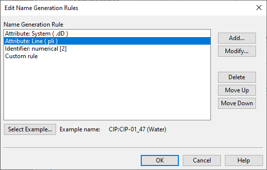 Note: P&ID and Plant Modeller use the same line name generation rules. Changing the rules for pipelines, ductlines, or cable trays in one application will affect the generating of line names in both of them.