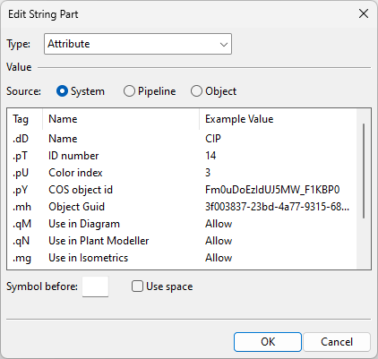 Line names can only use system attributes; for isometric group names, select the attribute type: System, Pipeline, or Object.