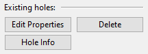 In the Hole Manager dialog, the Existing holes section allows you to perform actions that affect existing holes.