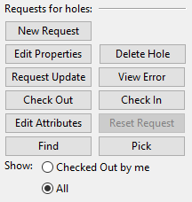 • Show – You can select whether to display only hole requests that are checked out to you or all hole requests.