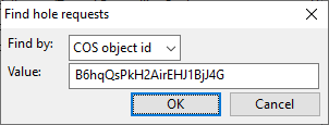 • Find – Opens the Find hole requests dialog that you can use to find a hole request or trigger object that has the specified tag and tag value.