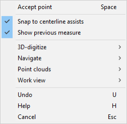 Accept point (Space) – Picks the current cursor location as the starting point (or the end point) of the measurement line.