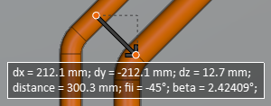 Snap to centerline assists – When enabled, selecting the starting point and/or the end point by clicking an object's centerline allows the tool to measure the shortest distance between the two objects.