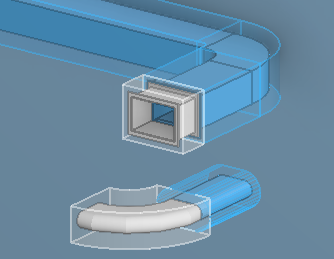 The changes in duct insulation settings are applied to work views when you close the Project Environment dialog. In the example below, the two selected duct parts have been modeled as components, and their insulation has been defined with the settings described above. As can be noticed from the picture, oval-shaped air duct components display a rectangular insulation shape.