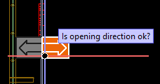 7. A two-way arrow is displayed in the work views. Click the side of the arrow that points to the intended direction of the opening.